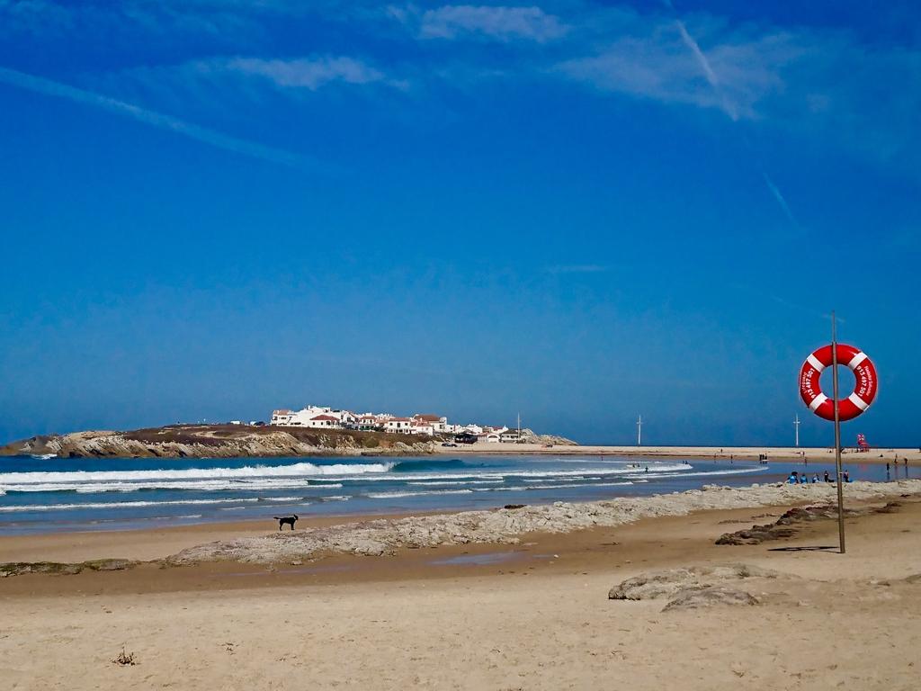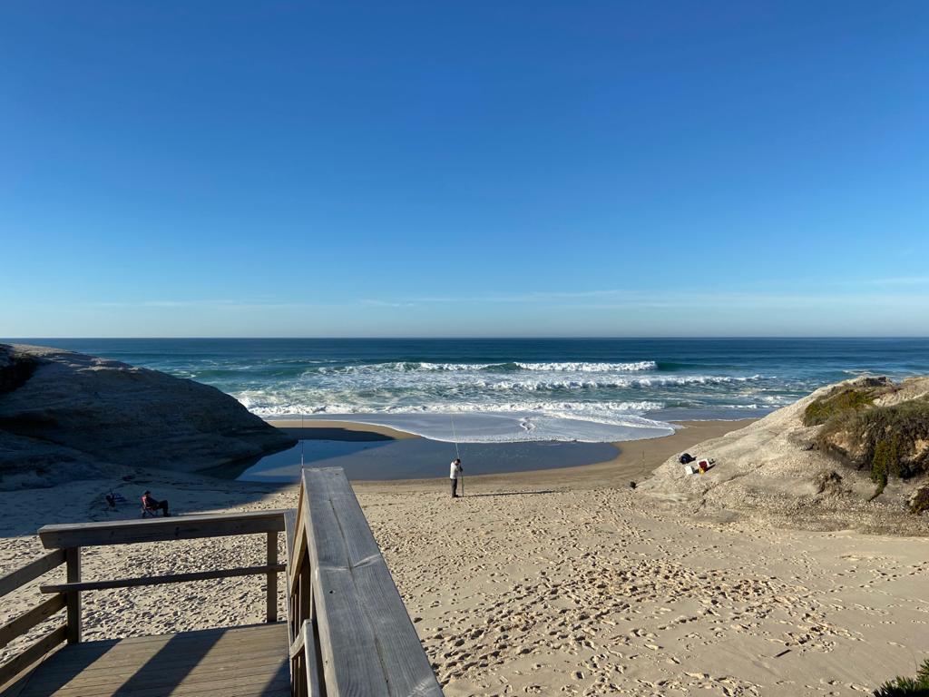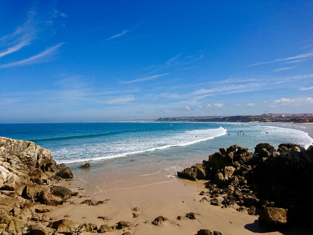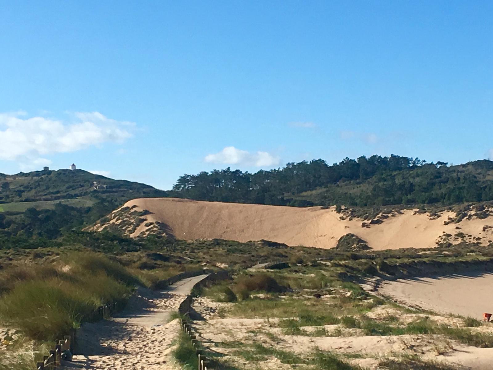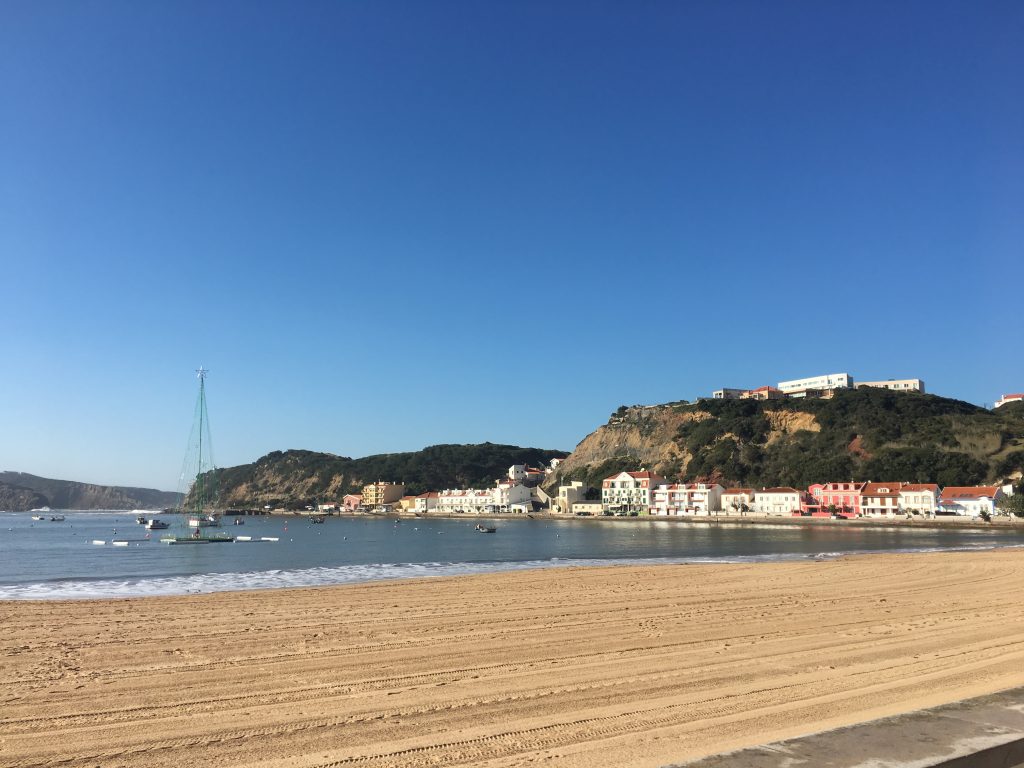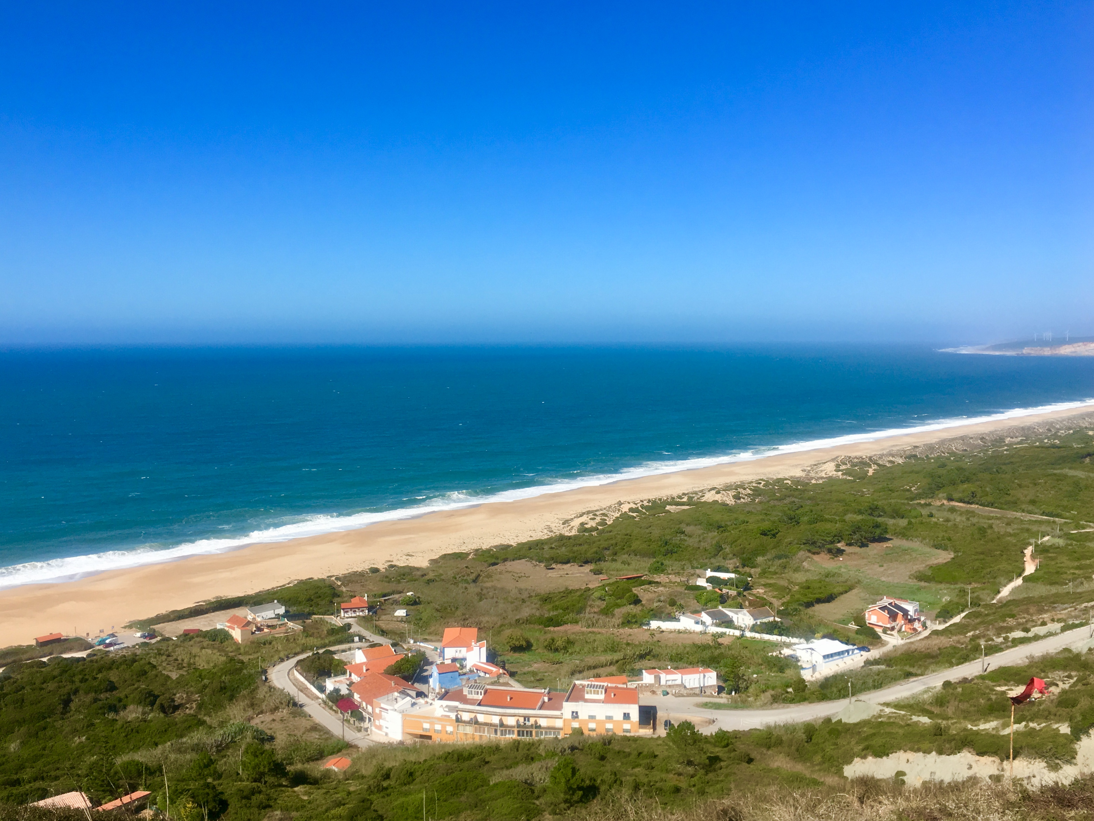 Auf der gegenüberliegenden Seite, scheinbar zum Greifen nah, tatsächlich aber eine halbstündige Autofahrt entfernt, liegt der Praia de Rei Cortiço, ein kleiner, kaum besuchter, aber zum Baden sehr gut geeigneter Strand, an dem man in Richtung Peniche wunderbare, lange, einsame Strandspaziergänge machen kann.
